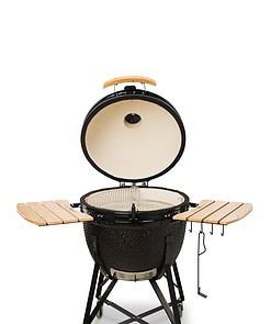 Our most popular model used for cooking with bigger families or parties (up to 10 people). A perfect choice for the backyard or terrace of your house or cottage. With this grill, you can cook 20 burgers, 2 pork shoulders, 4 chickens, a 6-kg turkey, 10 beefsteaks or 36-cm diameter pizza. This model lets you enjoy all the advantages of Kamado BONO grills as it is compatible with most of the grill accessories. Do you feel like smoking fish, baking bread or roasting meat? With your Kamado BONO it’s as easy as pie.